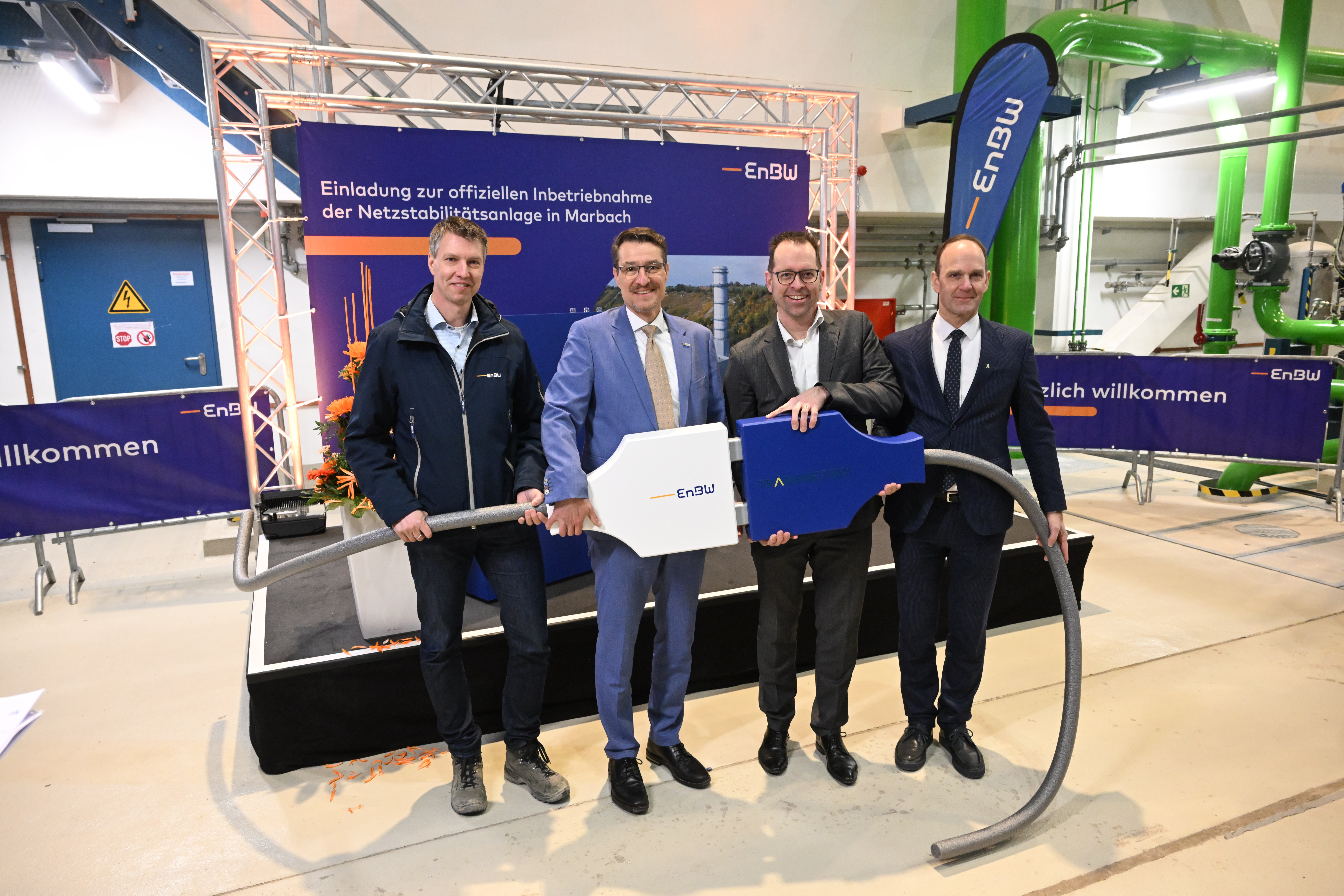 Marbach am Neckar. Ein wichtiger Meilenstein zur Sicherung der bundesweiten Stromversorgung ist erreicht. Die EnBW Energie Baden-Württemberg AG hat heute die neue Netzstabilitätsanlage am Kraftwerksstandort Marbach offiziell mit ihrem Auftraggeber, dem Übertragungsnetzbetreiber TransnetBW GmbH, eingeweiht.