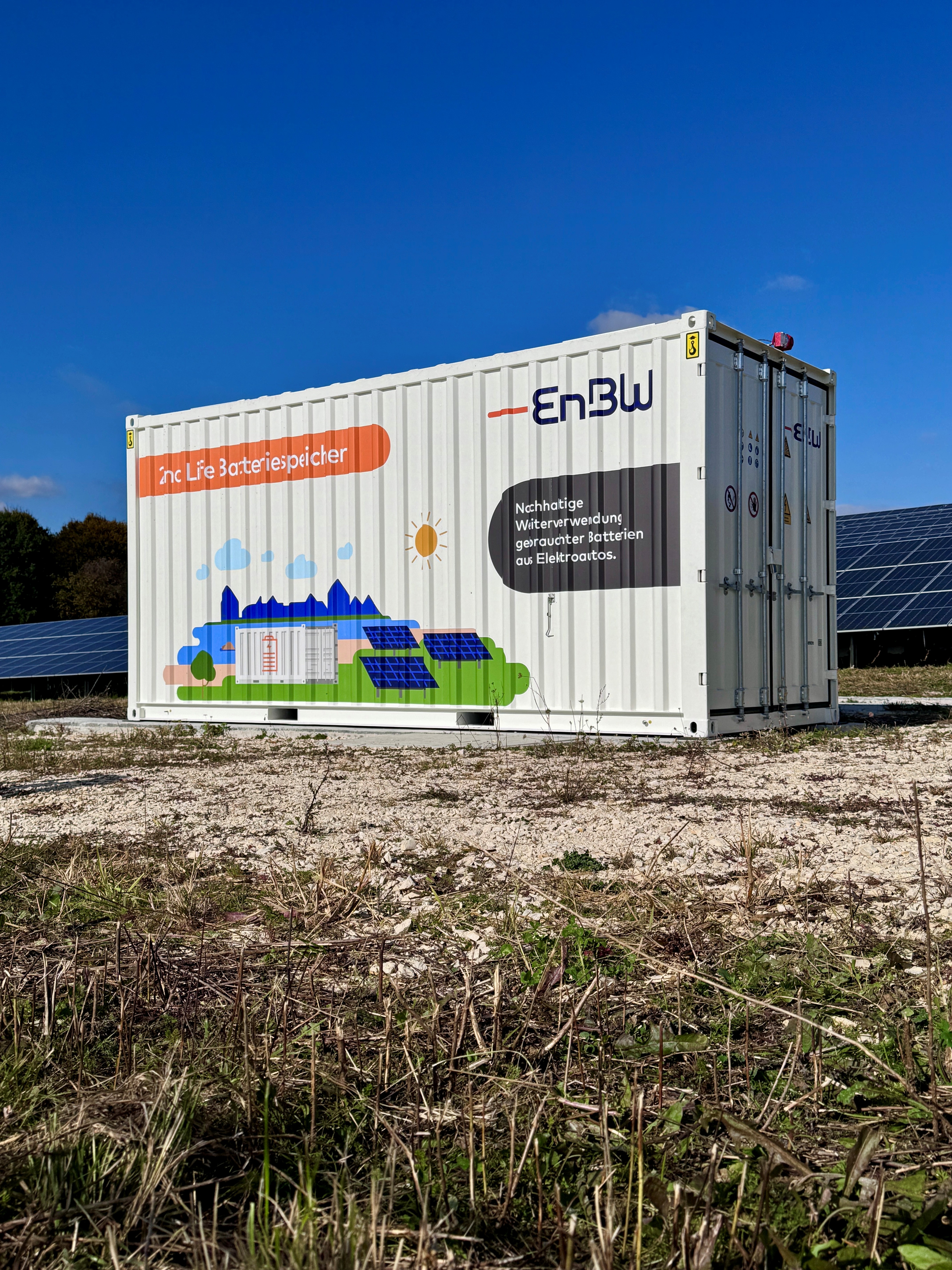 „Dieser Speicher ist ein schönes Beispiel dafür, wie Mobilitätswende und die Transformation des Energiesystems Hand in Hand gehen“, erklärt Arnim Wauschkuhn, Leiter Batteriespeicherlösungen bei der EnBW. Er ergänzt: „Mit dem Hochlauf der E-Mobilität werden immer mehr Fahrzeug-Akkus produziert und es kommen immer mehr leistungsstarke Batteriespeicher in den Umlauf. Und diese Batterien können wir auch für stationäre Speicher nutzen. Das spart wertvolle Ressourcen und ermöglicht gleichzeitig die Nutzung von Solarstrom auch bei geringer Sonneneinstrahlung oder nachts.“