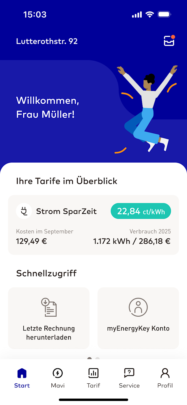 Verlagern Sie Ihre Verbräuche in günstige SparZeiten. Unsere Energie-Managerin EnBW Mavi unterstützt beim Kosten sparen.Sichere Planbarkeit