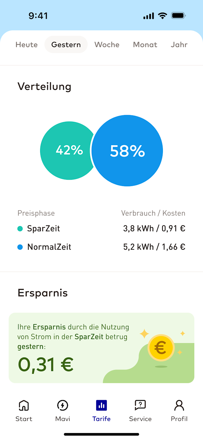 - Während des Tages gibt es feste Zeitfenster für SparZeiten und NormalZeiten. In den SparZeiten profitieren Sie von einem besonders günstigen Verbrauchspreis.
